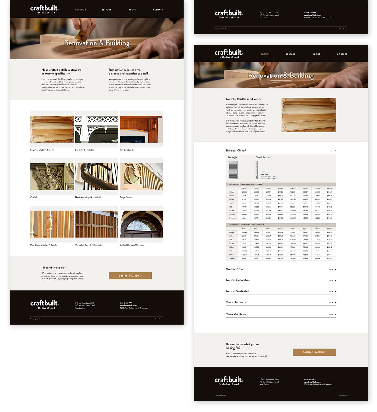Brand development design through website and brochure design and artwork; plus crafting the "about" video from footage by Tom Allan. Craftbuilt logo designed by Kate at Band.